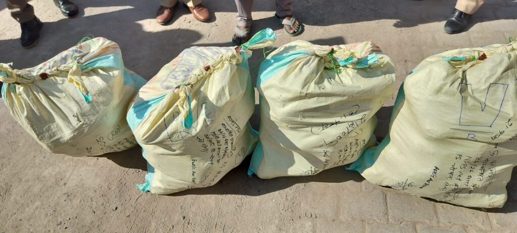 वाहन की तलाशी लेने पर शीशे के कबाड़ के बीच छिपाकर रखी गई चार प्लास्टिक बोरियों से कुल 85 किलो 300 ग्राम गांजा बरामद हुआ। बरामद गांजे की कीमत लगभग 17 लाख रुपये बताई जा रही है, जबकि वाहन सहित कुल कीमत करीब 37 लाख रुपये आंकी गई है।