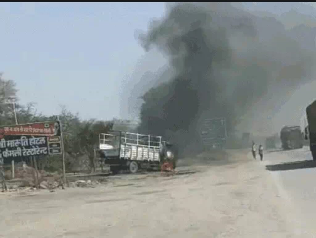 केमिकल से भरा मिनी ट्रक बना आग का गोला, ड्राइवर की सूझबूझ से टला बड़ा हादसा