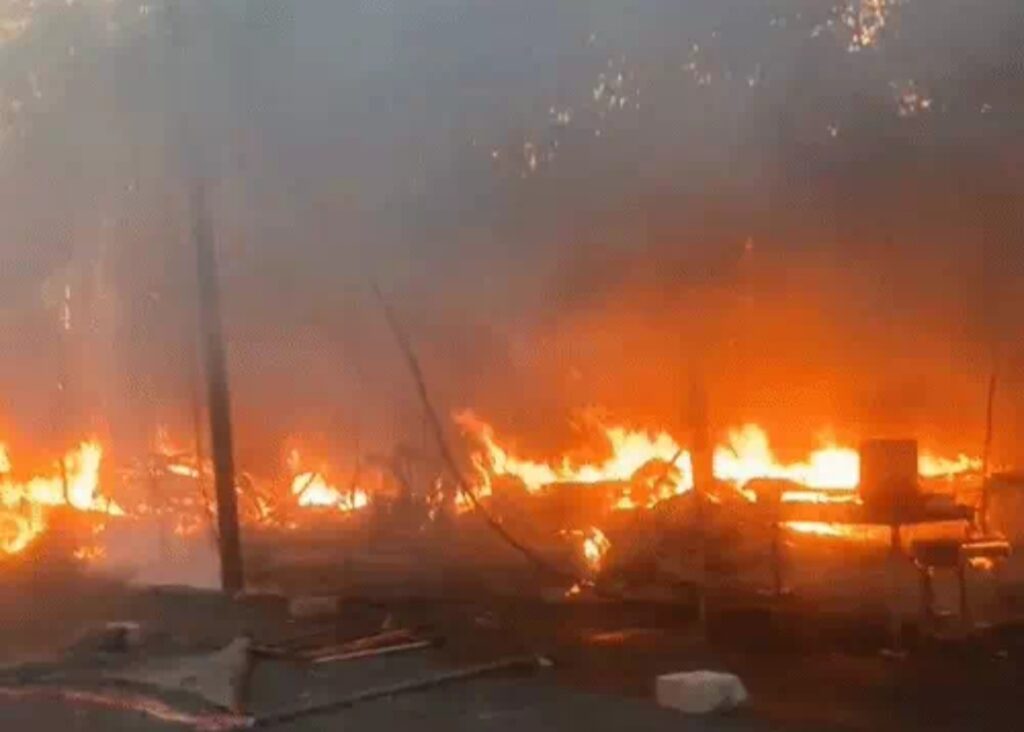 कानपुर में ऑर्डनेंस फैक्ट्री के पास भीषण आग: सिलेंडर फटे, 20 दुकानें खाक, कारोबारियों का लाखों का नुकसान