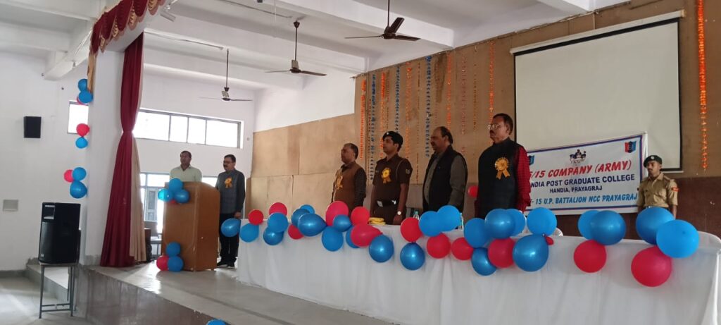 प्रयागराज( जनवार्ता )। हण्डिया पी. जी. कॉलेज, हण्डिया में राष्ट्रीय कैडेट कोर दिवस डॉ० देवराज सिंह ऑडिटोरियम में बड़े उत्साह, अनुशासन और गरिमा के साथ मनाया गया। कार्यक्रम का संचालन डॉ. सोमेश नारायण सिंह  तथा स्वागत भाषण लेफ्टिनेंट डॉ. शिवम वर्मा द्वारा प्रस्तुत किया गया।महाविद्यालय के प्राचार्य प्रो. विवेक पाण्डेय ने कहा कि,एनसीसी युवाओं में चरित्र निर्माण, नेतृत्व क्षमता और राष्ट्रभक्ति की भावना को दृढ़ बनाने वाला महत्त्वपूर्ण संगठन है। उन्होंने कहा कि एनसीसी कैडेट अनुशासन, कर्तव्यपरायणता और राष्ट्रीय चेतना के प्रतीक होते हैं।एनसीसी अधिकारी लेफ्टिनेंट डॉ. शिवम वर्मा ने कैडेट्स के प्रयासों और सहभागिता की सराहना करते हुए कहा कि एनसीसी युवाओं में सेवा भावना, सहयोग और नेतृत्व के गुणों का विकास करती है। उन्होंने कहा कि कॉलेज के कैडेट्स विभिन्न सामाजिक एवं राष्ट्रहित के कार्यक्रमों में सदैव सक्रिय रहते हैं,जो एनसीसी की मूल्यपरक शिक्षा को दर्शाता है।