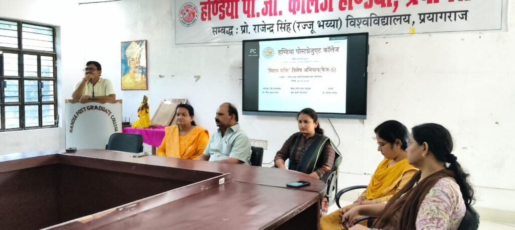 हंडिया (प्रयागराज) (जनवार्ता)। मिशन शक्ति फेज-5 अभियान के अंतर्गत हंडिया पीजी कॉलेज, हंडिया, प्रयागराज में महिला प्रकोष्ठ के तत्वावधान में दिनांक 9 अक्टूबर 2025 को “महिला सुरक्षा संबंधी हेल्पलाइन जागरूकता” कार्यक्रम का सफल आयोजन किया गया। कार्यक्रम का उद्देश्य छात्राओं को महिला सुरक्षा से जुड़ी सरकारी हेल्पलाइन सेवाओं, कानूनों एवं आत्मरक्षा के उपायों के प्रति जागरूक करना था।