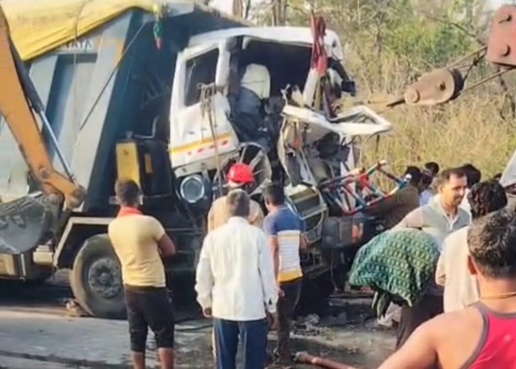 खड़े ट्रेलर से टकराया हाईवा, केबिन में फंसे चालक का रेस्क्यू कर बचाई गई जान