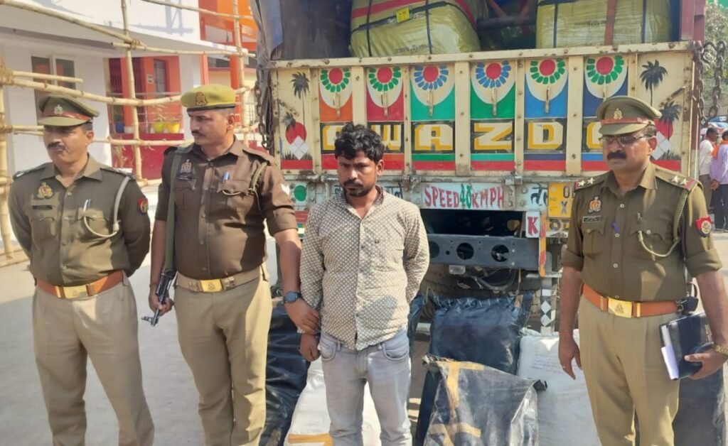 इसी दौरान शनिवार कि देर- शाम को वाराणसी-शक्तिनगर मार्ग पर एक संदिग्ध आयशर गुड्स कैरियर (OD19 X 8751) की तलाशी ली गई। जांच में वाहन में लदे एल्यूमिनियम बंडलों के पीछे छिपाकर रखे 8 प्लास्टिक बोरों से कुल 150 किलोग्राम गांजा बरामद हुआ। पुलिस ने मौके से वाहन चालक अनन्ता द्वारी (निवासी अंगुल, उड़ीसा) को गिरफ्तार कर लिया।