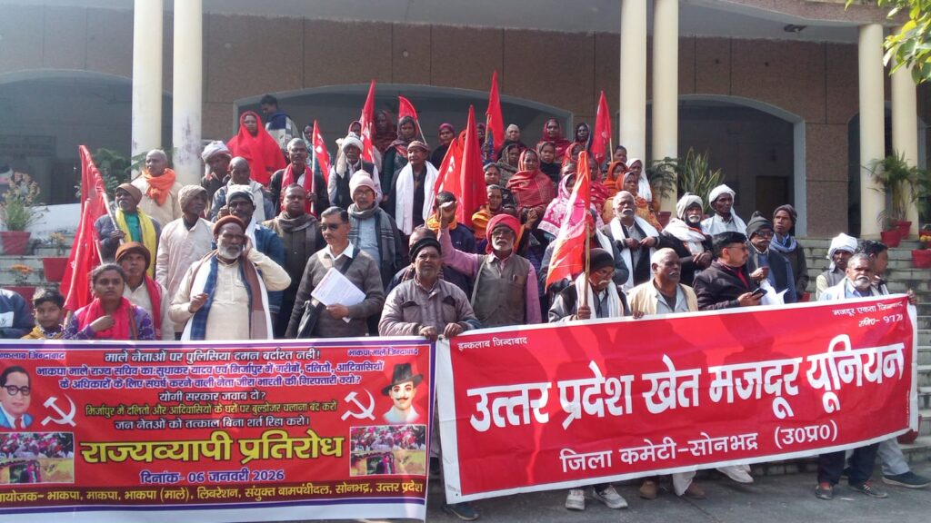 सोनभद्र (जनवार्ता)! संयुक्त वाम दलों और खेत मजदूर यूनियनों ने मंगलवार को मनरेगा बचाने, भाकपा (माले) नेताओं की रिहाई समेत कई मांगों को लेकर विशाल जुलूस निकालकर कलेक्ट्रेट पर धरना-प्रदर्शन किया और सरकार की नीतियों के खिलाफ जमकर नारेबाजी की।
