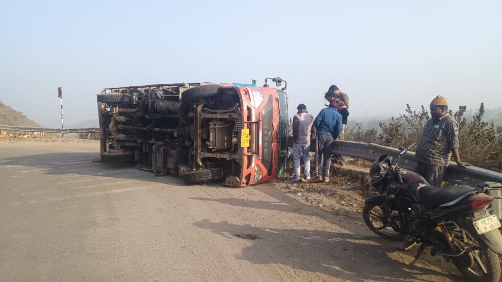 सोनभद्र (जनवार्ता)। वाराणसी–शक्तिनगर मार्ग पर स्थित मारकुंडी घाटी में बुधवार दोपहर एक बार फिर सड़क हादसा हुआ। तीखे मोड़ पर अनियंत्रित हुई मालवाहक डिसियम पलट गई, हालांकि राहत की बात यह रही कि चालक और खलासी दोनों सुरक्षित बच निकले।