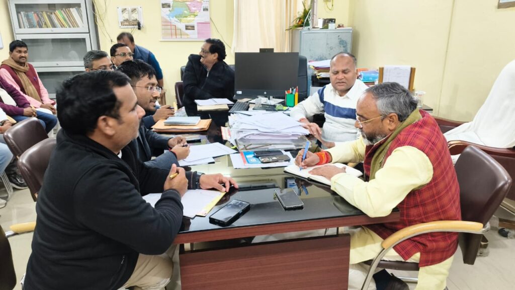 सोनभद्र (जनवार्ता) । सदर विधायक भूपेश चौबे ने गुरुवार को अपर जिलाधिकारी के कक्ष में धान खरीद से जुड़े विभागीय अधिकारियों के साथ समीक्षा बैठक कर जनपद में चल रही खरीद प्रक्रिया का विस्तृत जायजा लिया। उन्होंने स्पष्ट किया कि सरकार की मंशा के अनुरूप सभी क्रय केंद्रों पर नियमित, पारदर्शी और समयबद्ध ढंग से धान खरीद सुनिश्चित की जाए।