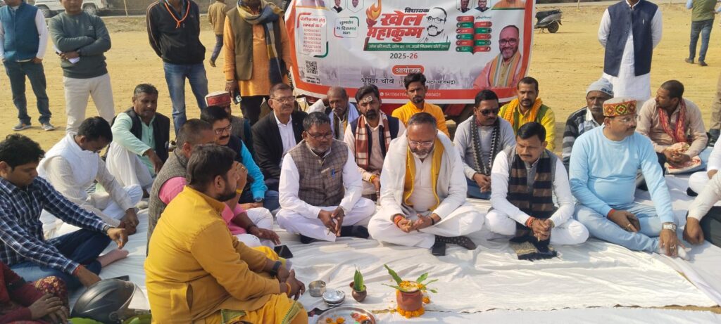 सोनभद्र  (जनवार्ता)   । “सोन की माटी सोन का दम, आओ मिलकर खेले हम” जैसे ऊर्जावान नारे शुक्रवार को हाइडिल मैदान में गूंज उठे, जब 25 दिसंबर से शुरू होने वाले विधायक खेल महाकुंभ के आयोजन हेतु विधिवत भूमि पूजन किया गया। वैदिक मंत्रोच्चार और धार्मिक विधि के साथ संपन्न इस कार्यक्रम में बड़ी संख्या में जनप्रतिनिधि और स्थानीय लोग उपस्थित रहे।