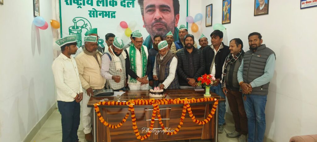 सोनभद्र में राष्ट्रीय लोक दल के जिला कार्यालय पर शनिवार को पार्टी के राष्ट्रीय अध्यक्ष एवं केंद्रीय मंत्री जयंत चौधरी का जन्मदिवस हर्षोल्लास के साथ मनाया गया। इस अवसर पर पार्टी पदाधिकारियों और कार्यकर्ताओं ने केक काटकर खुशी जाहिर की तथा उनके दीर्घ और यशस्वी राजनीतिक जीवन की कामना की।