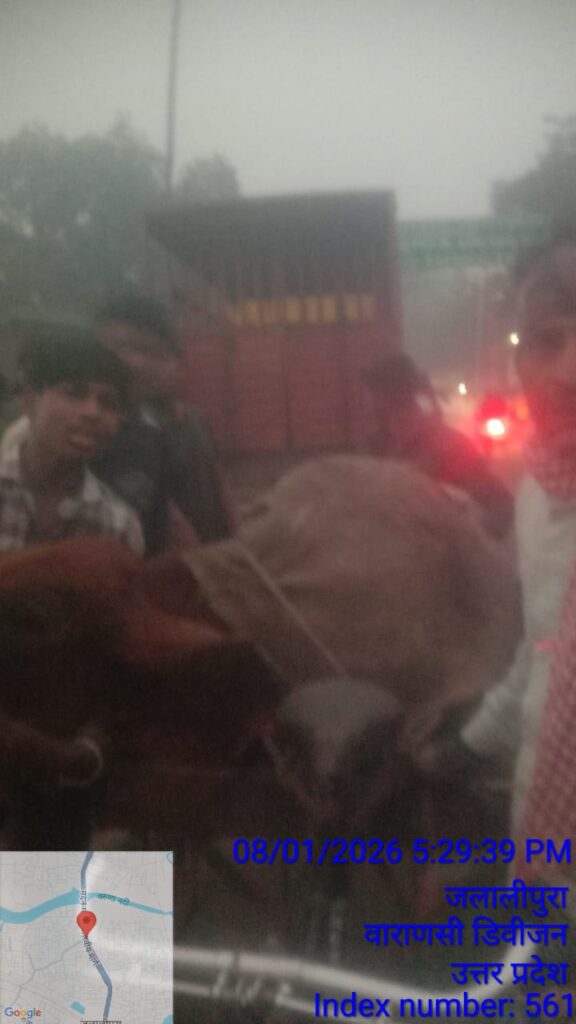 वाराणसी (जनवार्ता) : जैतपुरा थाना क्षेत्र अंतर्गत सरैया पुलिस चौकी के पास पुराने पुल के निकट नदी किनारे एक गाय नाले में फंस गई थी। ठंड और कीचड़ के कारण गाय की हालत गंभीर हो रही थी। सरैया चौकी पर तैनात हेड कांस्टेबल विजय कुमार सरोज ने इसकी सूचना तुरंत राष्ट्रीय गौ रक्षा वाहिनी की टीम को दी।