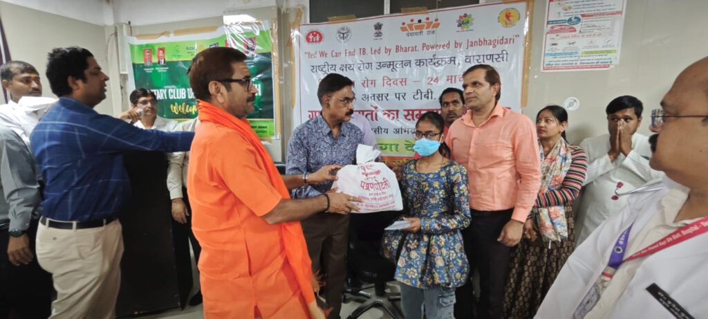 विधायक डॉ. नीलकंठ तिवारी ने किया 50 टीबी मरीजों को पोषण पोटली का वितरण