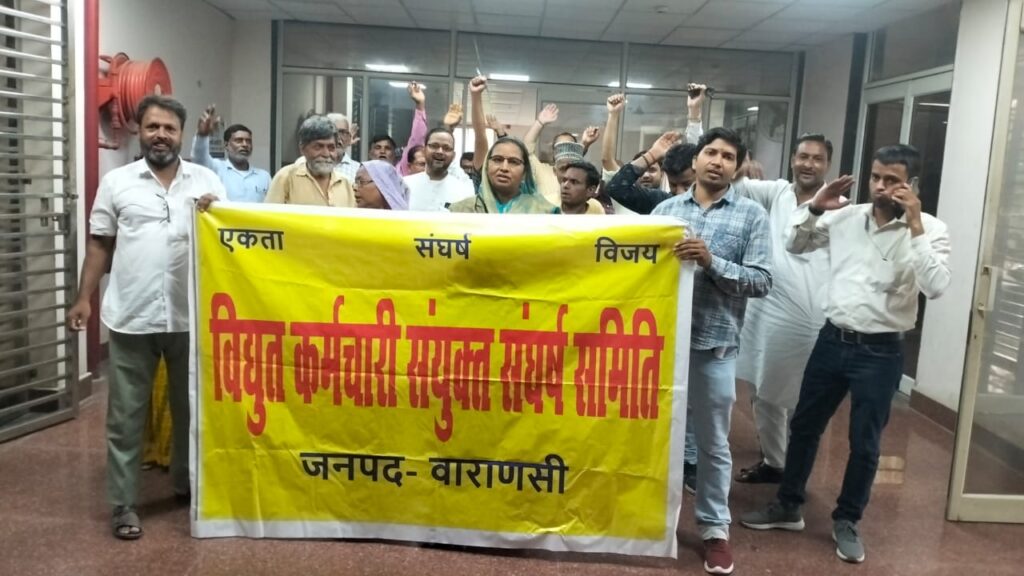 वाराणसी (जनवार्ता) : विद्युत कर्मचारी संयुक्त संघर्ष समिति, उत्तर प्रदेश के बैनर तले पूर्वांचल विद्युत वितरण निगम और दक्षिणांचल विद्युत वितरण निगम के निजीकरण के विरोध में चल रहे आंदोलन के 296वें दिन शुक्रवार को बनारस के बिजली कर्मियों ने प्रदेशव्यापी प्रदर्शन किया।