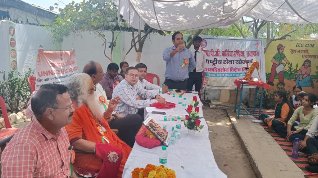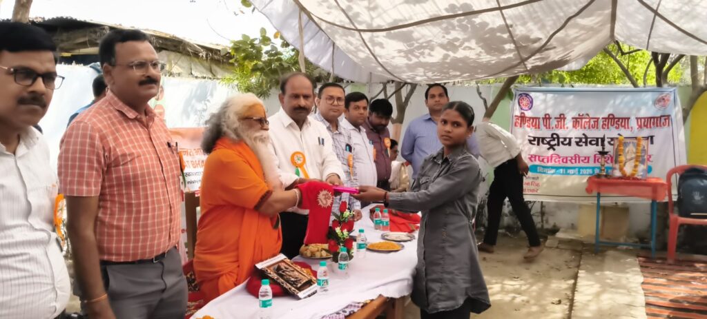 हण्डिया पी.जी. कॉलेज, हण्डिया, प्रयागराज की राष्ट्रीय सेवा योजना (NSS) इकाई द्वारा ग्राम बासुपुर स्थित प्राथमिक विद्यालय परिसर में आयोजित सप्त दिवसीय विशेष शिविर का समापन समारोह आज उत्साह एवं गरिमामय वातावरण में सम्पन्न हुआ। कार्यक्रम के मुख्य अतिथि श्री सच्चा बाबा आध्यात्मिक संस्कृत महाविद्यालय, नैनी प्रयागराज के पूर्व प्राचार्य डॉ. चंद्र देव मिश्र रहे। विशिष्ट अतिथि के रूप में ग्राम बासुपुर के प्रधान श्री दयाराम यादव, विश्वविद्यालय क्रीड़ा सचिव प्रोफेसर मुन्ना सिंह, आईक्यूएसी कोऑर्डिनेटर डॉ. शैलेंद्र कुमार यादव, इतिहास विभाग के आचार्य डॉ. रविंद्र कुमार सिंह तथा डॉ. सत्येंद्र कुमार सिंह उपस्थित रहे। इस अवसर पर मुख्य अतिथि डॉ. चंद्र देव मिश्र ने अपने संबोधन में कहा कि राष्ट्रीय सेवा योजना युवाओं में सेवा, अनुशासन और सामाजिक उत्तरदायित्व की भावना विकसित करने का सशक्त माध्यम है। उन्होंने स्वयंसेवकों द्वारा शिविर के दौरान चलाए गए स्वच्छता अभियान, सामाजिक जागरूकता रैली, नशा उन्मूलन, मतदाता जागरूकता तथा सामाजिक कुरीतियों के विरुद्ध किए गए प्रयासों की सराहना करते हुए कहा कि ऐसे कार्यक्रम समाज में सकारात्मक परिवर्तन लाने में महत्वपूर्ण भूमिका निभाते हैं।