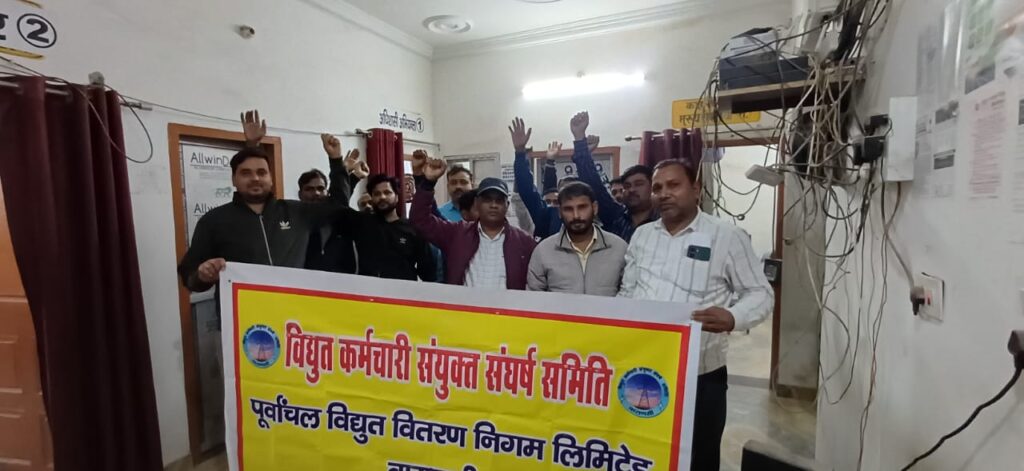 वाराणसी (जनवार्ता) । बिजली के निजीकरण, इलेक्ट्रिसिटी (अमेंडमेंट) बिल 2025 और जबरन प्रीपेड स्मार्ट मीटर लगाए जाने के खिलाफ विद्युत कर्मचारी संयुक्त संघर्ष समिति के बैनर तले बुधवार को 357वें दिन भी बनारस सहित पूरे उत्तर प्रदेश में बिजली कर्मचारियों ने विभिन्न कार्यालयों के सामने जोरदार प्रदर्शन किया।