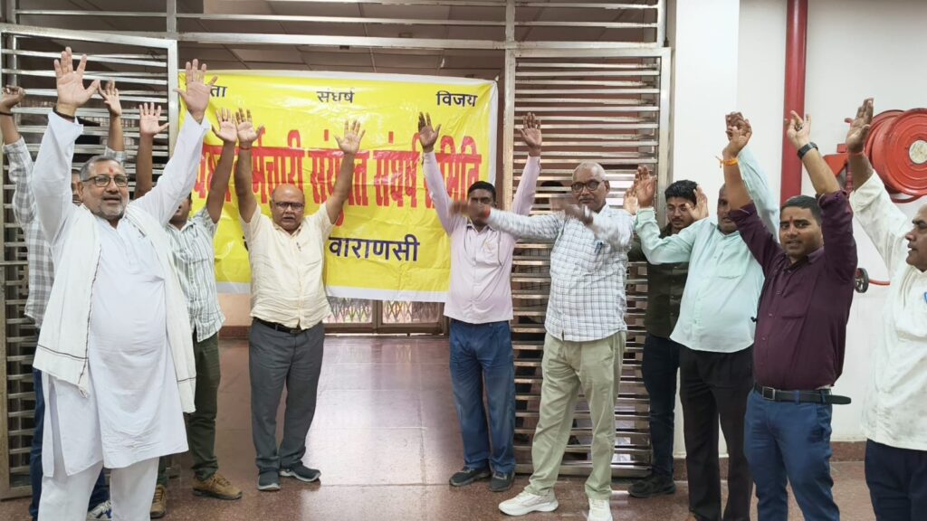 वाराणसी (जनवार्ता) । विद्युत कर्मचारी संयुक्त संघर्ष समिति, उत्तर प्रदेश के बैनर तले बनारस के बिजली कर्मियों ने 314वें दिन भी पूर्वांचल और दक्षिणांचल विद्युत वितरण निगमों के निजीकरण के खिलाफ जोरदार विरोध प्रदर्शन किया। कर्मचारियों ने 06 अक्टूबर 2020 को तत्कालीन ऊर्जा मंत्री श्रीकांत शर्मा और वित्त मंत्री सुरेश खन्ना के साथ हुए लिखित समझौते का हवाला देते हुए निजीकरण का निर्णय रद्द करने की मांग की।