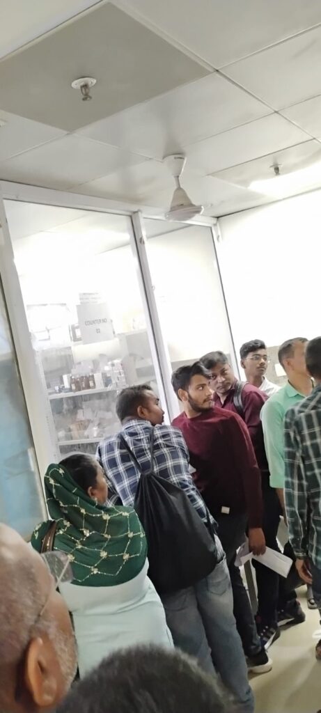 दूसरी ओर, दोपहर में सैकड़ों मरीज दवा काउंटर पर लाइन में लगे थे, तभी बिना सूचना के काउंटर कर्मचारी चले गए। इससे हंगामा मच गया। मरीजों का कहना है कि दवाएं पूरी नहीं मिलतीं, काउंटर समय से पहले बंद हो जाता है और परिजन भूखे-प्यासे इंतजार करते रहते हैं। अस्पताल प्रबंधक से शिकायत करने पर उन्होंने दवा अनुपलब्धता, कर्मचारियों की कमी और काउंटर की कमी का हवाला देकर पल्ला झाड़ लिया।