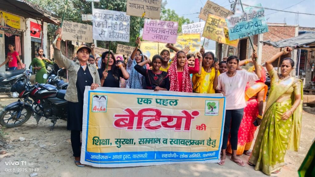 मिर्जामुराद (जनवार्ता)  : लोक समिति वाराणसी और आशा ट्रस्ट के संयुक्त तत्वाधान में बुधवार को सेवापुरी ब्लॉक के करधना (भटपुरवां) गांव में बालिका महोत्सव का आयोजन किया गया। इस कार्यक्रम में सेवापुरी ब्लॉक के दर्जनों गांवों से सैकड़ों किशोरी लड़कियों ने उत्साहपूर्वक हिस्सा लिया। लड़कियों ने कन्या भ्रूण हत्या, यौन उत्पीड़न, दहेज और बाल विवाह के खिलाफ गांव में जोरदार रैली निकाली। रैली में शामिल लड़कियों ने नारे लगाए, जैसे- “बाल विवाह पर रोक लगाओ”, “तिलक-दहेज छोड़ो, जाति-पाति तोड़ो”, “भीख नहीं, अधिकार चाहिए, जीने का सम्मान चाहिए”, और “कन्या भ्रूण हत्या बंद करो”।