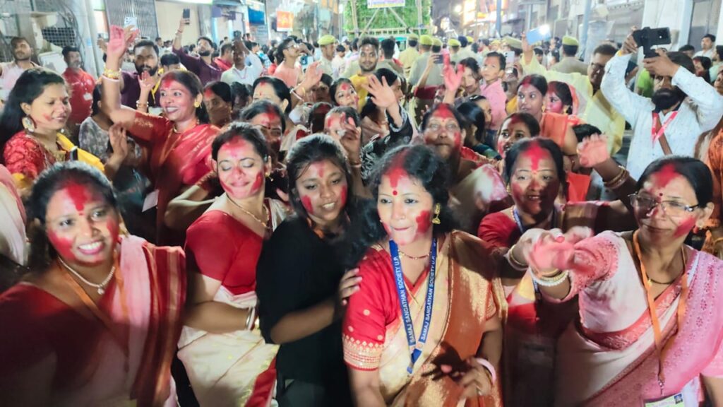 कार्यक्रम की विशेषता रही महिलाओं द्वारा किया गया सिंदूर खेला, जिसमें सभी ने माँ दुर्गा को सिंदूर अर्पित कर आपस में भी इसे लगाकर शक्ति और सौहार्द का संदेश दिया। इसके उपरांत संघ ध्वनि के साथ पारंपरिक बांग्ला रीति-रिवाज के अनुसार ‘उल्लू ध्वनि’ से वातावरण गुंजायमान हो उठा। इस मौके पर श्रद्धालुओं ने माँ से आशीर्वाद लिया और उनकी विदाई के क्षण को भावपूर्ण तरीके से मनाया।