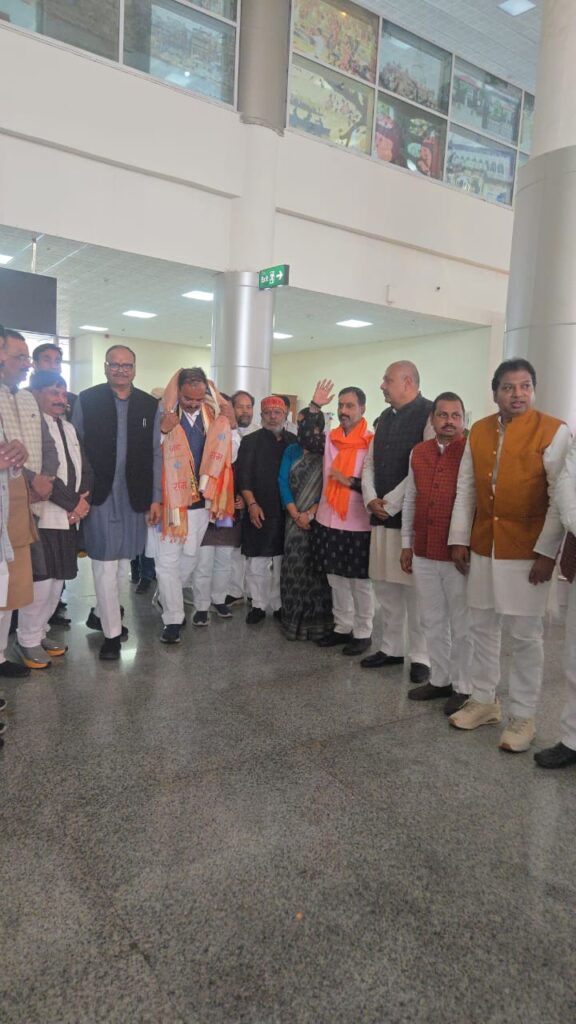 उपमुख्यमंत्री केशव प्रसाद मौर्य और बृजेश पाठक का एयरपोर्ट पर भव्य स्वागत