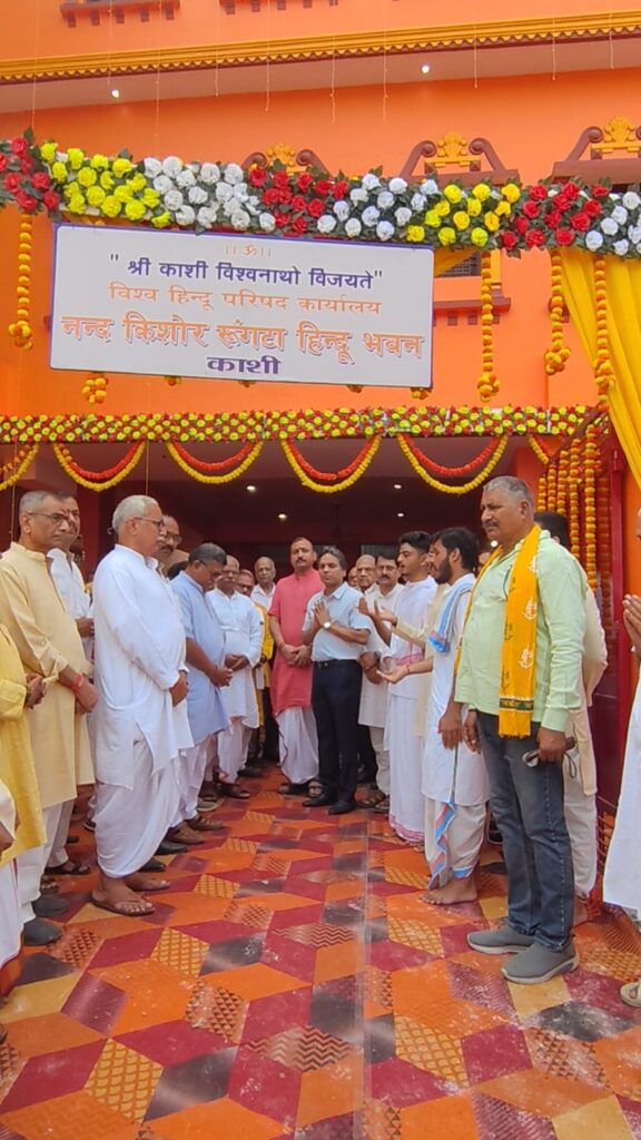 वाराणसी  (जनवार्ता): विश्व हिन्दू परिषद (विहिप), काशी का मुख्य कार्यालय ‘नंद किशोर रुंगटा हिन्दू भवन’ का लोकार्पण समारोह शुक्रवार को विधि-विधान के साथ सम्पन्न हुआ। प्रातः 8 बजे से शुरू हुए धार्मिक अनुष्ठान और हवन-पूजन के बाद विहिप के केंद्रीय संगठन महामंत्री मिलिंद परांडे ने कार्यालय का उद्घाटन किया। इस अवसर पर विहिप के वरिष्ठ पदाधिकारी उपस्थित रहे।