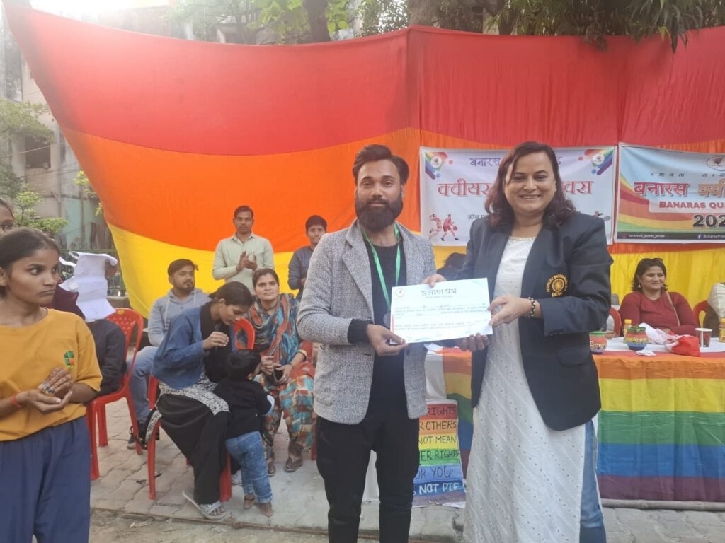 वाराणसी । बनारस क्वीयर प्राइड के तत्वावधान में शनिवार को कांशीराम आवास में क्वीयर खेल प्रतियोगिता का आयोजन उत्साहपूर्ण वातावरण में किया गया। इस कार्यक्रम का मुख्य उद्देश्य खेलों के माध्यम से समावेशी माहौल तैयार करना, बंधुत्व की भावना को बढ़ावा देना और सभी प्रतिभागियों को साझा मंच प्रदान करना रहा।