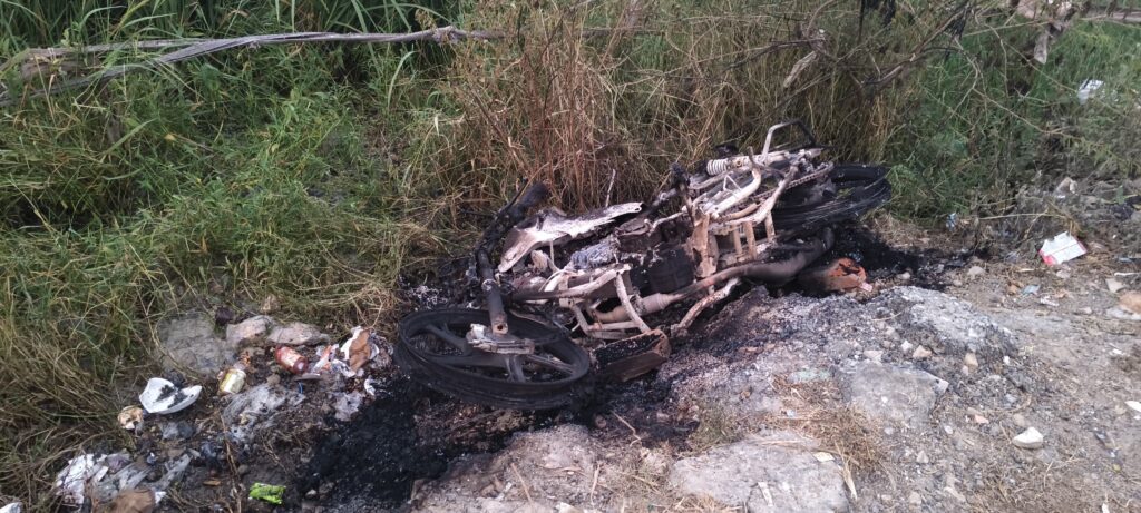 मिर्जमुराद : जुआड़ियों ने पुलिस की बाइक फूंकी, चार हिरासत में