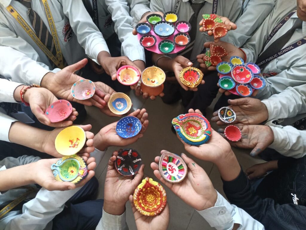 आर.एस. शिवमूर्ति पब्लिक स्कूल में दीपावली के अवसर पर रंगोली और दिया मेकिंग प्रतियोगिता आयोजित