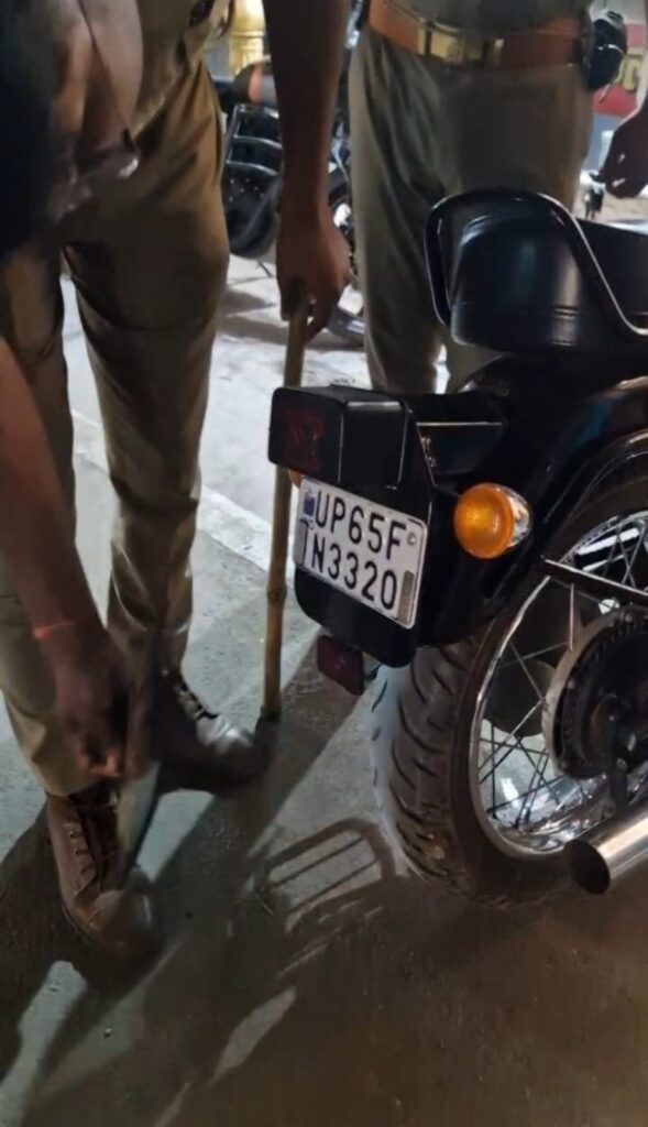 जैसे ही बुलेट चेकिंग पॉइंट के सामने पहुंची, पांडेयपुर चौकी प्रभारी प्रमोद कुमार गुप्ता ने तुरंत आदेश दिया “रोको! इसको रोक दो!” पुलिस टीम ने बुलेट को घेर लिया। सवार की सारी रौब और अकड़ पल भर में गायब हो गई, चेहरा उतर गया। पुलिस ने बिना किसी देरी के बुलेट को सीज कर दिया ।