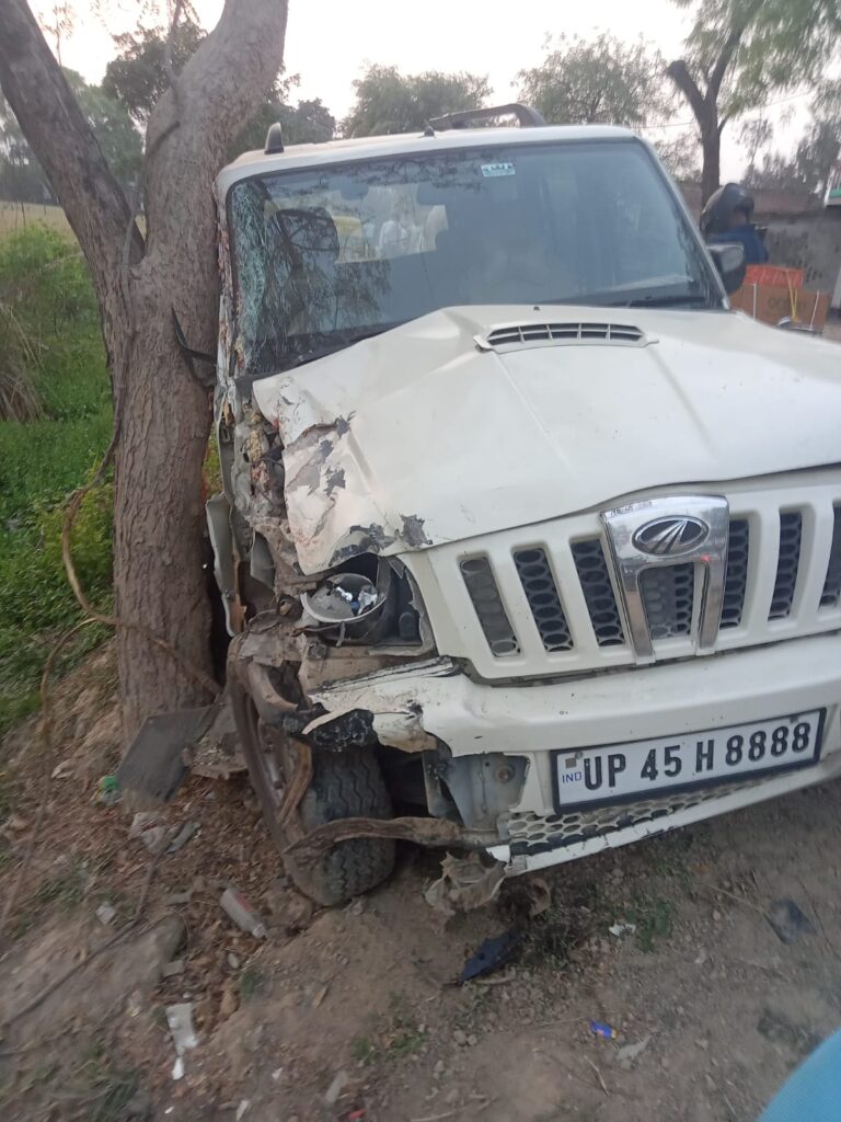 अनियंत्रित स्कॉर्पियो ने बाइक सवार बुजुर्ग को मारी टक्कर, पेड़ से जा टकराई, टला बड़ा हादसा