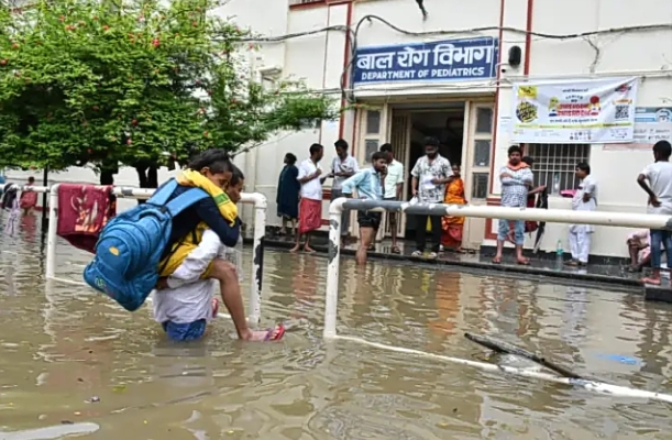 बीएचयू अस्पताल में जलभराव, पार्किंग में चली ओपीडी