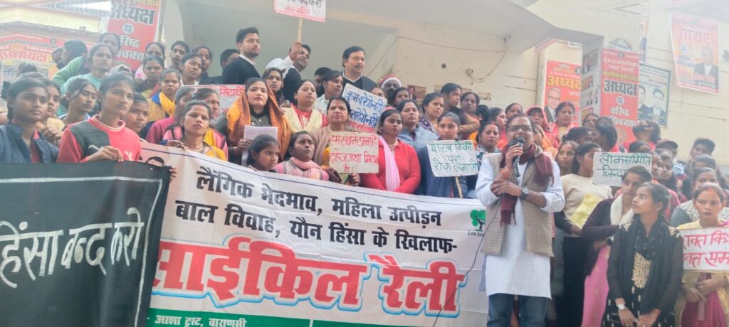 वाराणसी (जनवार्ता)। निर्भया दिवस (16 दिसंबर) के अवसर पर प्रधानमंत्री के सांसद आदर्श ग्राम नागेपुर से सैकड़ों महिलाओं व बालिकाओं ने घरेलू हिंसा, लैंगिक भेदभाव, यौन उत्पीड़न और शराब बिक्री के खिलाफ जन आक्रोश साइकिल रैली निकाली। आशा ट्रस्ट व लोक समिति द्वारा आयोजित इस रैली में आराजीलाइन और सेवापुरी ब्लॉक के दर्जनों गांवों से आईं महिलाएं व बालिकाएं नागेपुर स्थित लोक समिति आश्रम पर एकत्र हुईं।